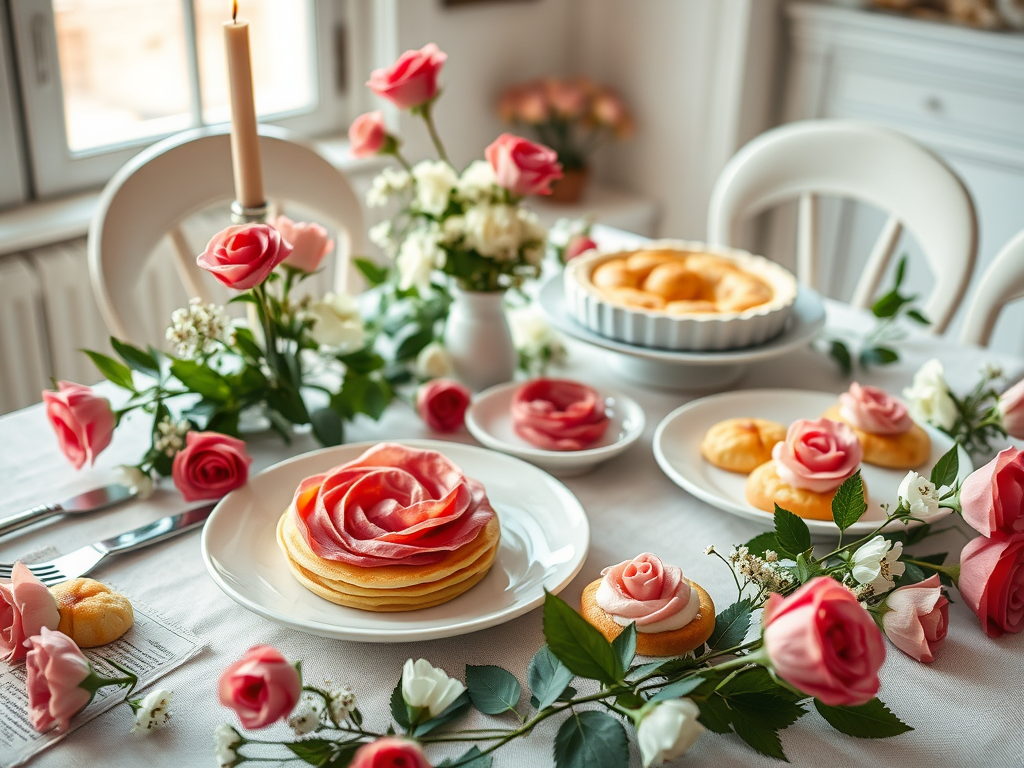 Start the morning with pancakes shaped like roses or simply sprinkled with powdered sugar and topped with strawberry or raspberry preserves. Serve with a side of fresh berries and a drizzle of honey.
