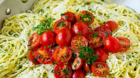 Serve a simple and symbolic lunch of angel hair pasta tossed with olive oil, garlic, cherry tomatoes, and fresh basil. Pair with breadsticks for an easy but meaningful meal.